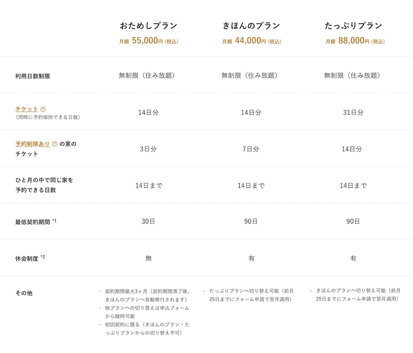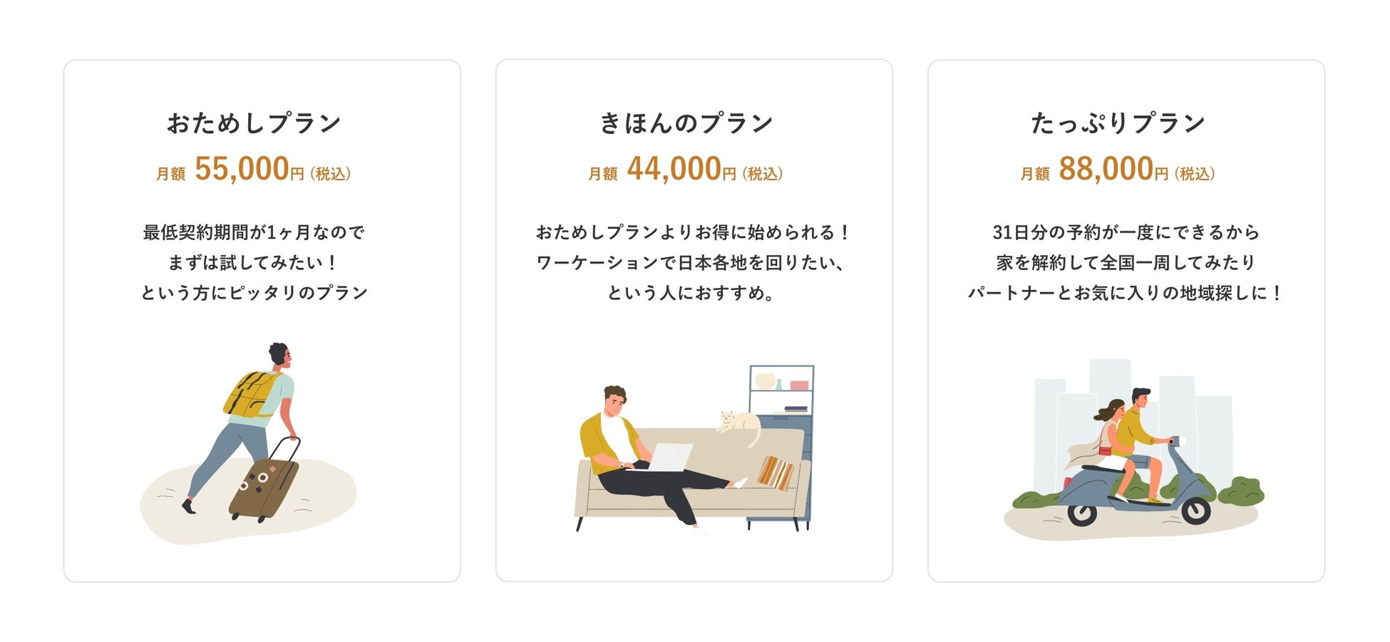 お試し利用の1ヶ月限定「おためしプラン」と、自宅解約したアドレスホッパー向けに31日分の予約権利が付与される「たっぷりプラン」の2つのサービスプランを提供開始し、ライフスタイルに合わせて選択肢を増やしました。