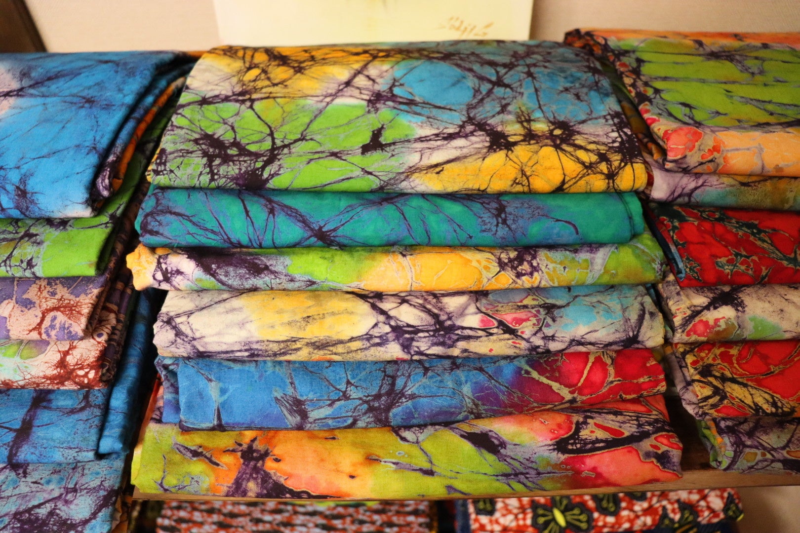 そんなトーゴ商人たちから買い付けたアフリカンプリントをご用意しています。別名「ハッピープリント」とも称される、見ているだけで元気になる鮮やかな布を是非ご覧ください!