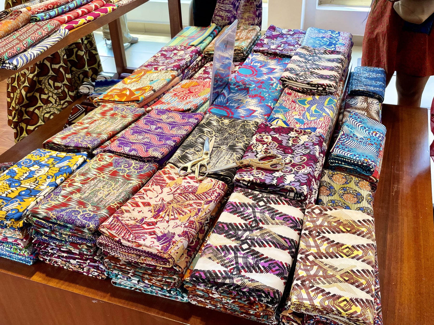 別名「ハッピープリント」とも称されるアフリカ大陸に流通するアフリカンプリント。その聖地とも言える西アフリカ地域から直輸入したアフリカ布が京都西陣で展示販売される。