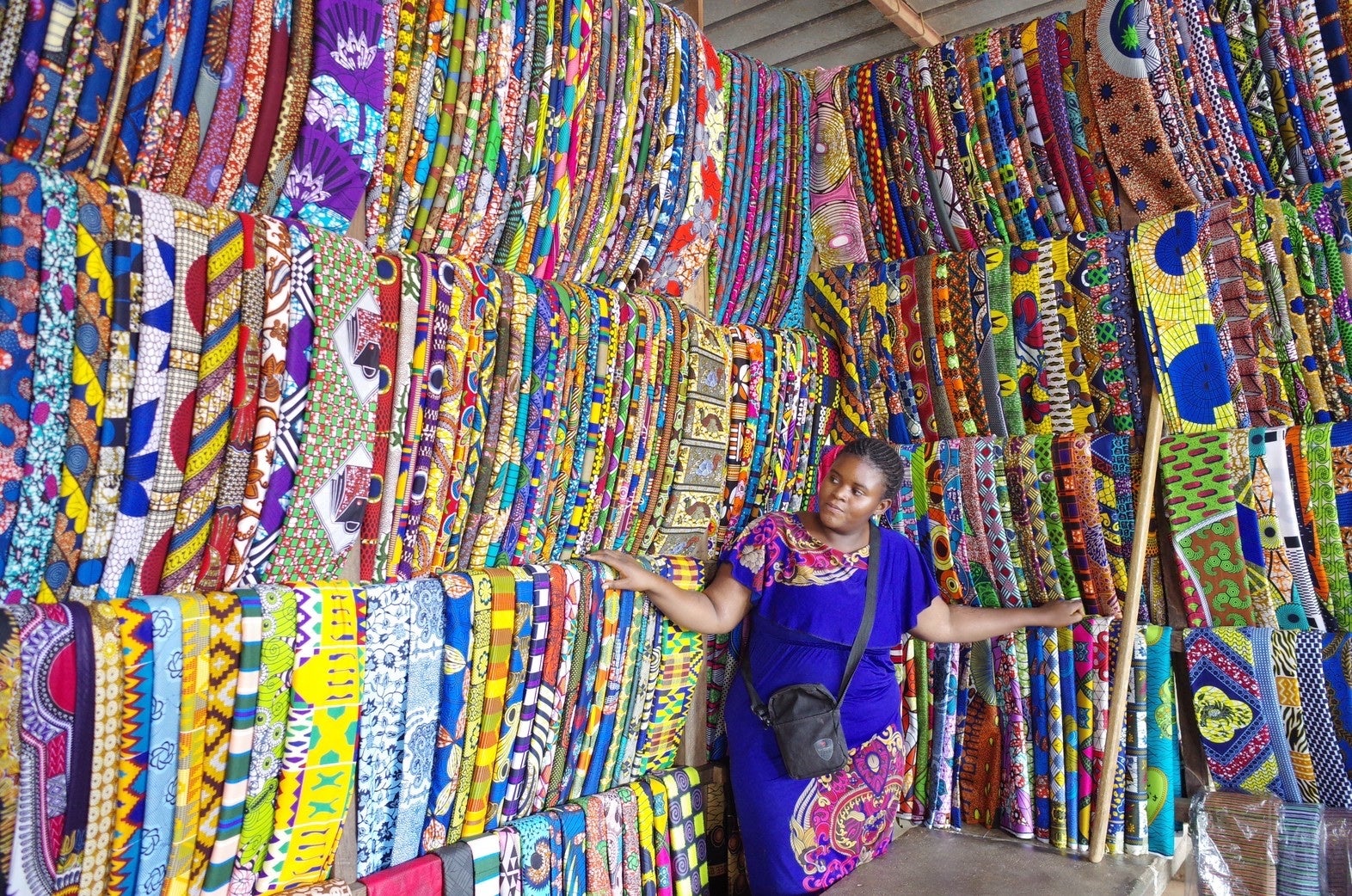 ※1ヤードは、生地幅が約117cm×長さが約90cm■ 西アフリカ初の億万長者が生まれたマルシェで